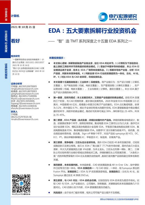【申万宏源】【20211021】计算机行业'智'造TMT系列深度之十五暨EDA系列之一:EDA,五大要素拆解行业投资机会-28页