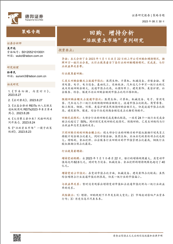 【德邦证券】【20230830】“活跃资本市场”系列研究:回购、增持分析-17页