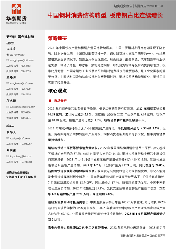 【华泰期货】【20230830】专题报告:中国钢材消费结构转型,板带钢占比连续增长-17页