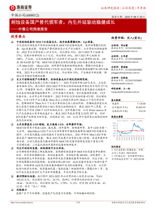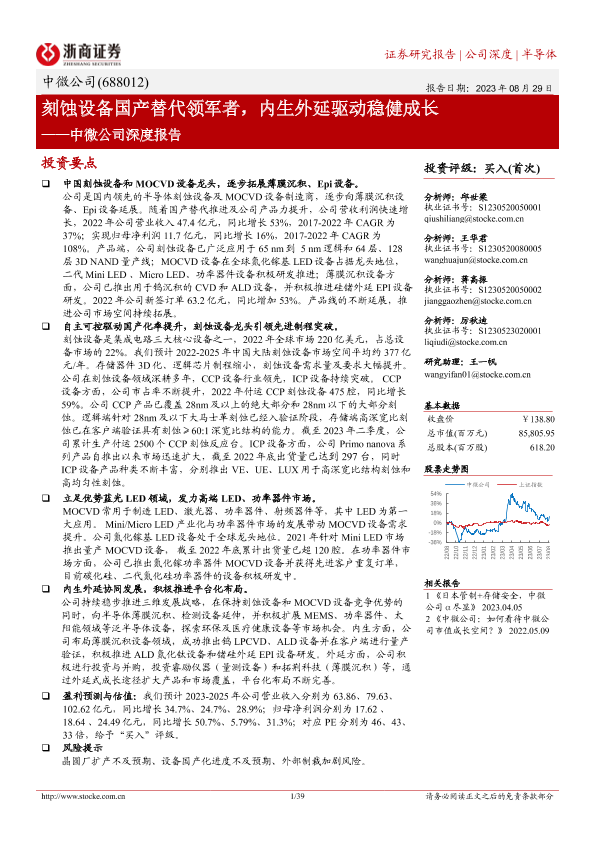 【浙商证券】【20230829】中微公司深度报告:刻蚀设备国产替代领军者,内生外延驱动稳健成长-39页