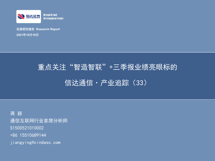 【信达证券】【20211016】通信行业·产业追踪(33):重点关注“智造智联”+三季报业绩亮眼标的-52页