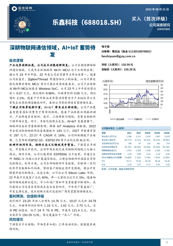 【国金证券】【20230831】乐鑫科技(688018)深耕物联网通信领域,AI+IoT蓄势待发-22页