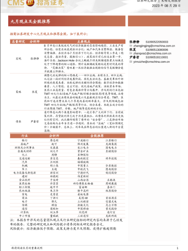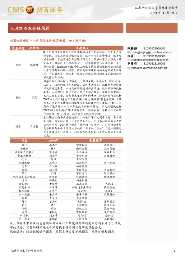 【海通证券】【20230829】九月观点及金股推荐-27页