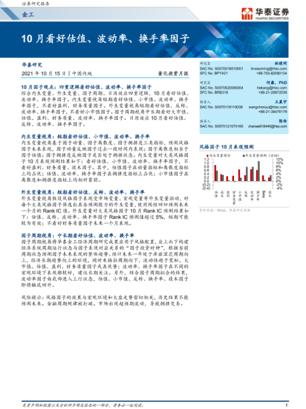 【华泰证券】【20211015】量化投资月报:10月看好估值、波动率、换手率因子-24页