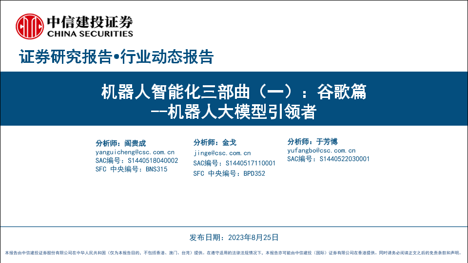 【中信建投证券】【20230825】人工智能行业机器人智能化三部曲(一):谷歌篇,机器人大模型引领者-24页