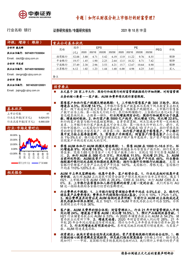 【中泰证券】【20211019】银行业专题:如何从财报分析上市银行的财富管理?-22页