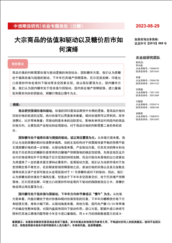 【中信期货】【20230829】农业专题报告(白糖) :大宗商品的估值和驱动以及糖价后市如何演绎【更正】-21页