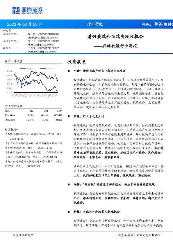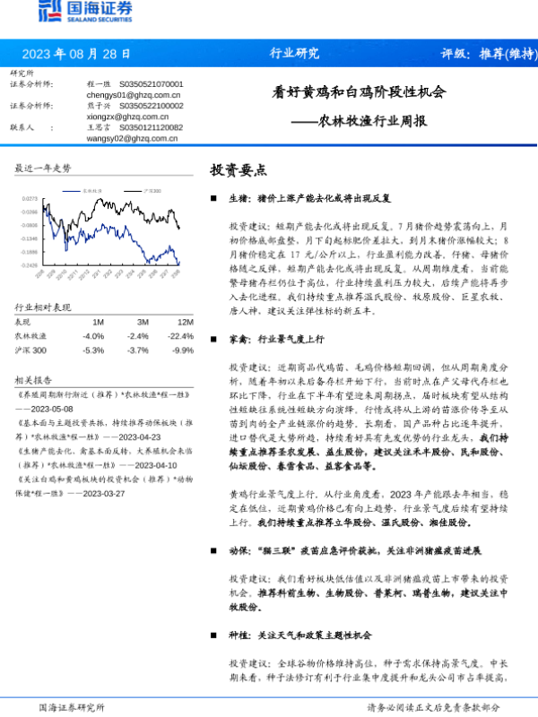 【国海证券】【20230828】农林牧渔行业周报:看好黄鸡和白鸡阶段性机会-20页