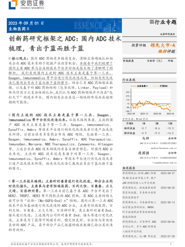 【安信证券】【20230901】创新药研究框架之ADC:国内ADC技术梳理,青出于蓝而胜于蓝-38页