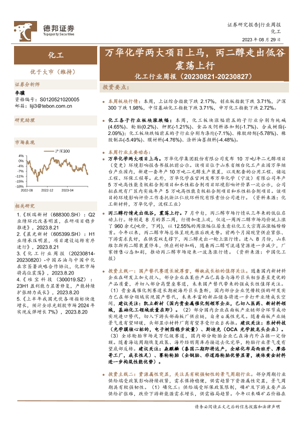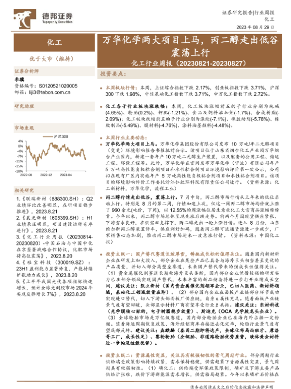 【德邦证券】【20230829】化工行业周报:万华化学两大项目上马,丙二醇走出低谷震荡上行-23页