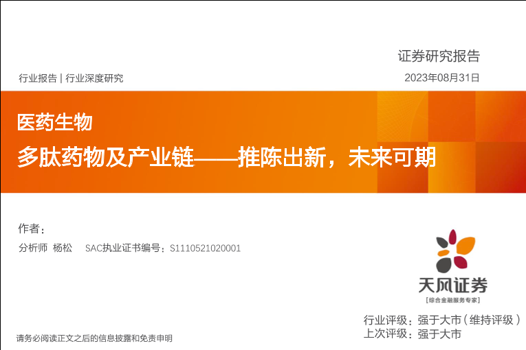 【天风证券】【20230831】医药生物行业深度研究:多肽药物及产业链_推陈出新,未来可期-49页
