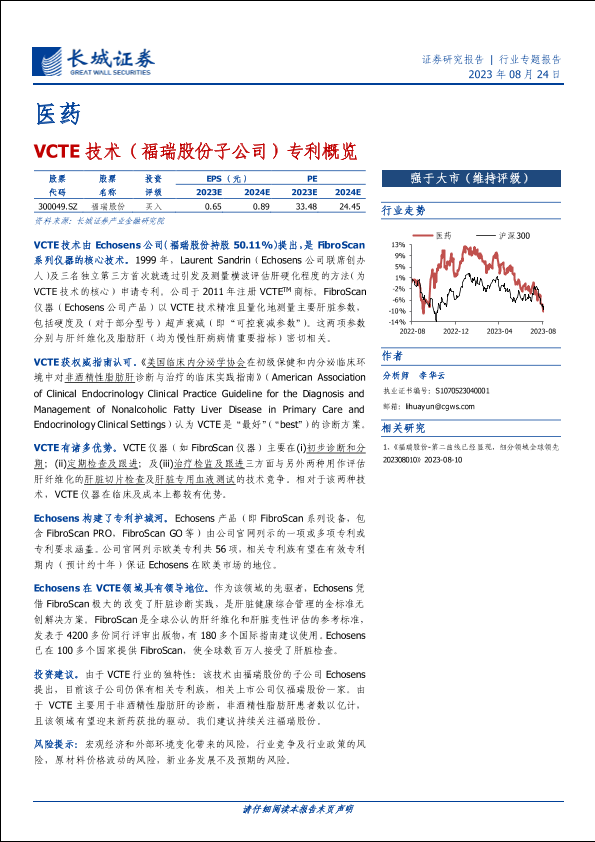【长城证券】【20230824】医药行业专题报告:VCTE技术(福瑞股份子公司)专利概览-15页