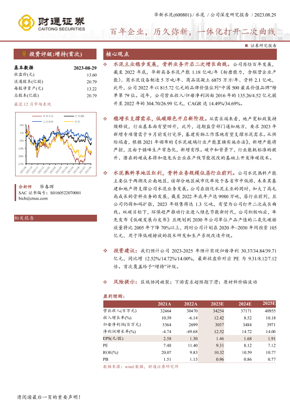 【财通证券】【20230829】华新水泥(600801)百年企业,历久弥新,一体化打开二次曲线-34页