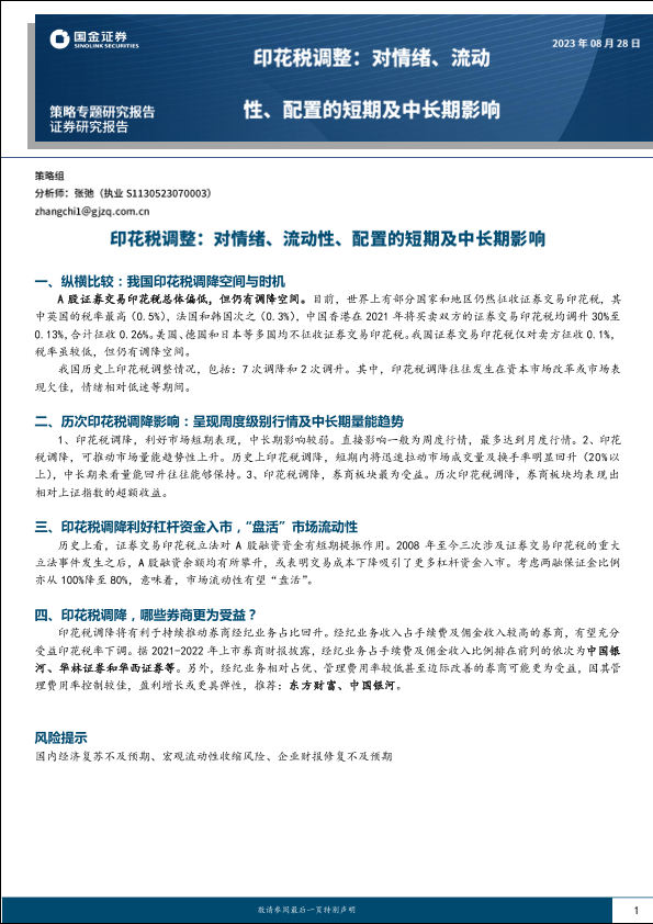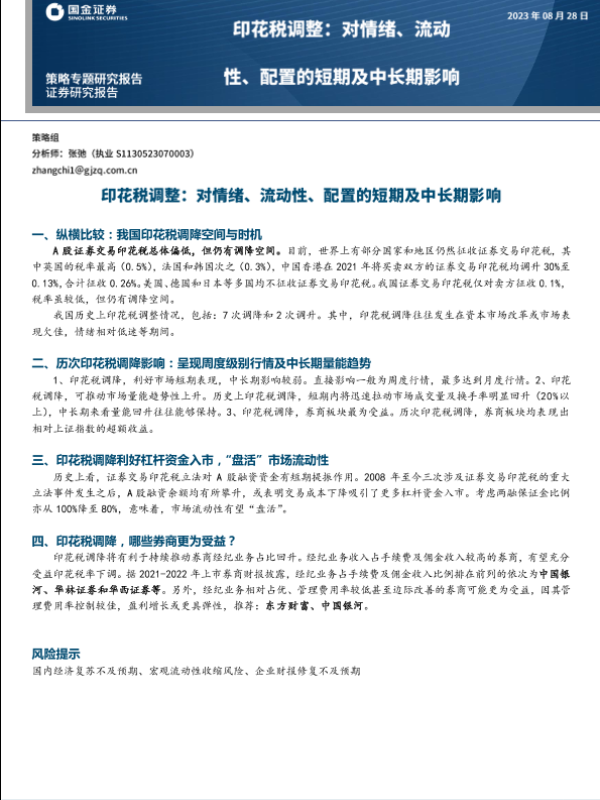 【国金证券】【20230828】印花税调整:对情绪、流动性、配置的短期及中长期影响-17页