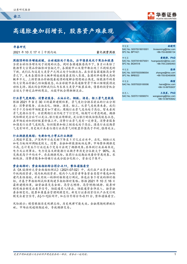 【华泰证券】【20211017】高通胀叠加弱增长,股票资产难表现-20页