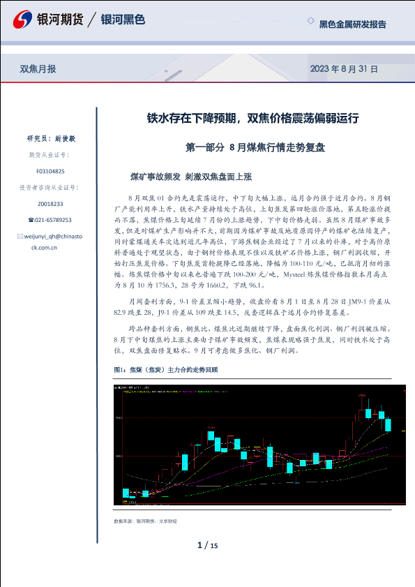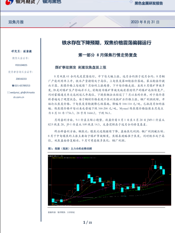 【银河期货】【20230831】双焦月报:铁水存在下降预期,双焦价格震荡偏弱运行-15页