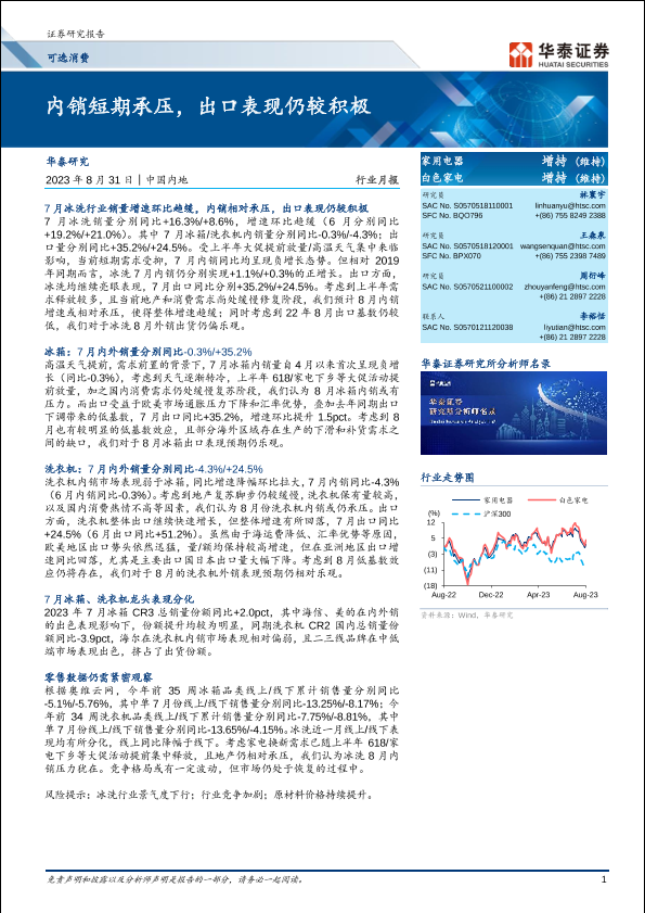 【华泰证券】【20230831】可选消费行业月报:内销短期承压,出口表现仍较积极-16页