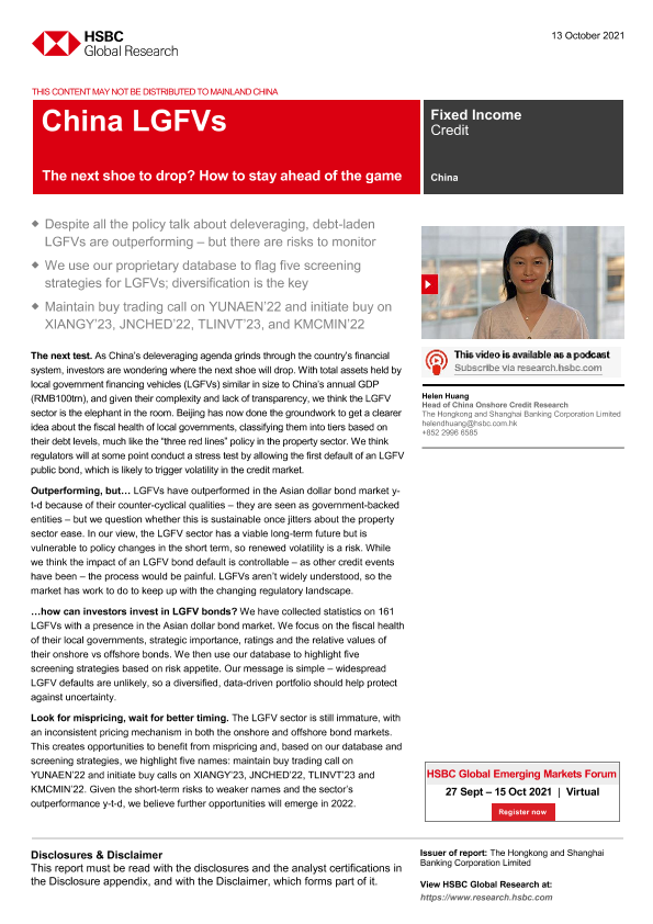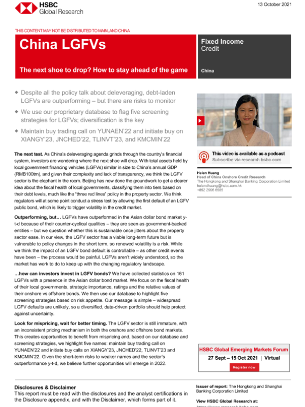 【The Hongkong and Shanghai Banking Corporation Limited】【20211013】中国地方政府融资平台:下一个落网的是谁?如何保持领先-27页