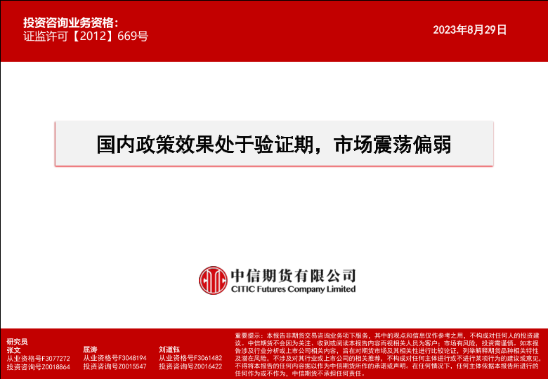 【中信期货】【20230829】国内政策效果处于验证期,市场震荡偏弱-16页