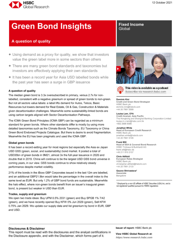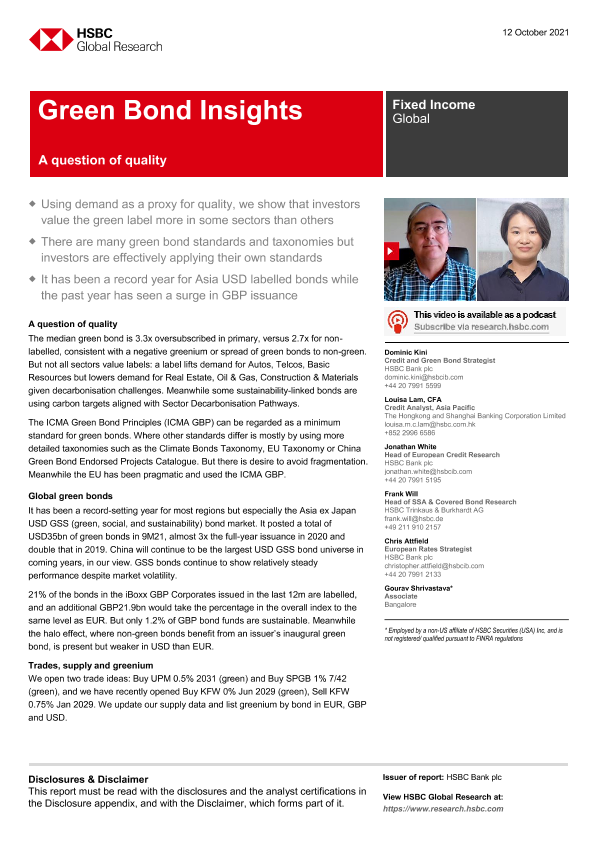 【HSBC Bank plc】【20211012】HSBC-全球投资策略-绿色债券洞察:质量问题-69页