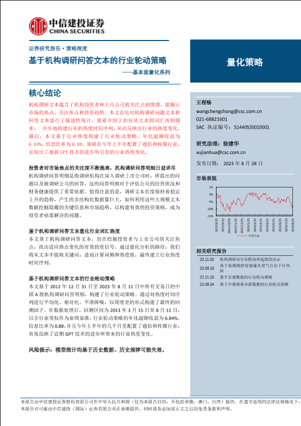 【中信建投证券】【20230828】基本面量化系列:基于机构调研问答文本的行业轮动策略-22页