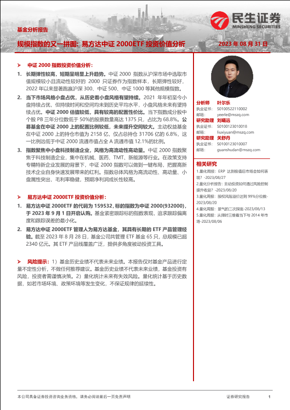 【民生证券】【20230831】基金分析报告:规模指数的又一拼图,易方达中证2000ETF投资价值分析-16页
