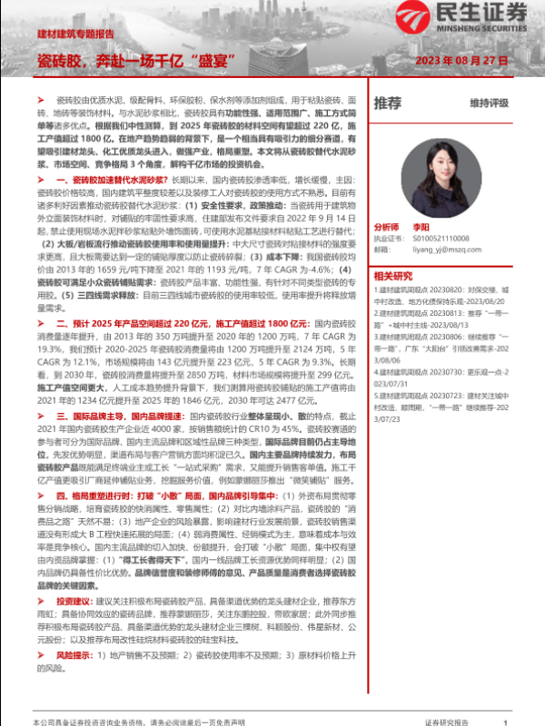 【民生证券】【20230827】建材建筑行业专题报告:瓷砖胶,奔赴一场千亿“盛宴”-20页