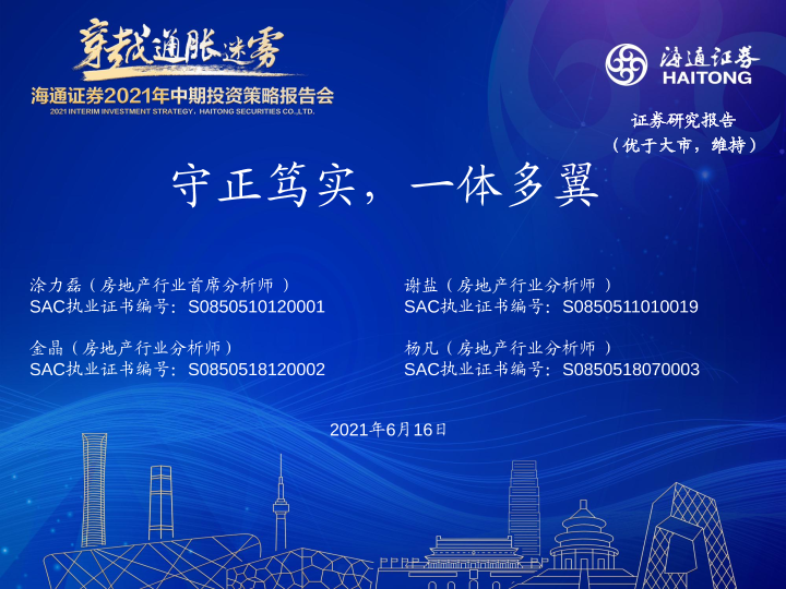 【海通证券】【20210616】房地产行业:守正笃实,一体多翼-26页