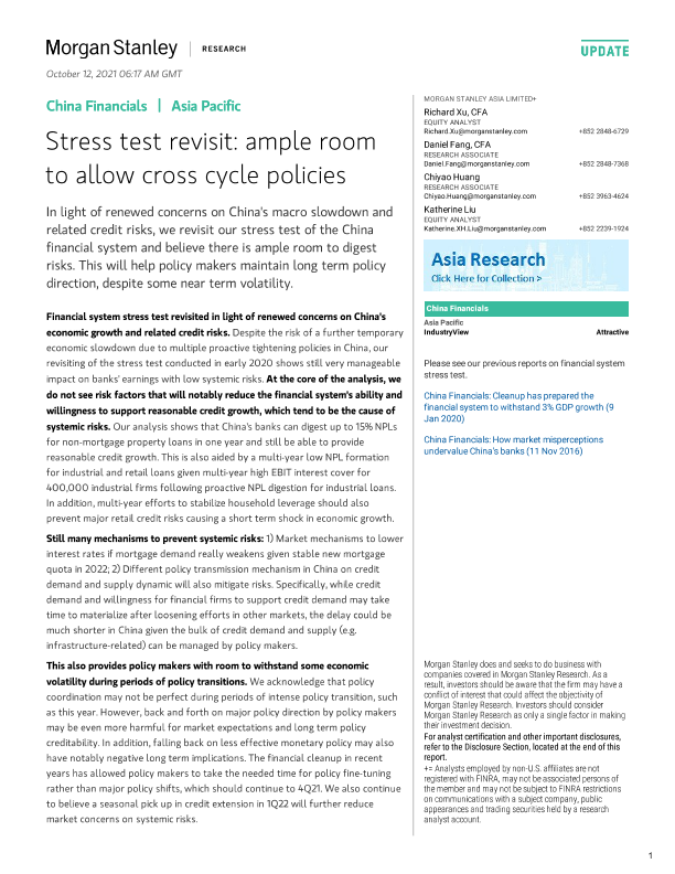 【Morgan Stanley】【20211012】中国金融行业-重访压力测试:允许跨周期政策的充足空间-27页