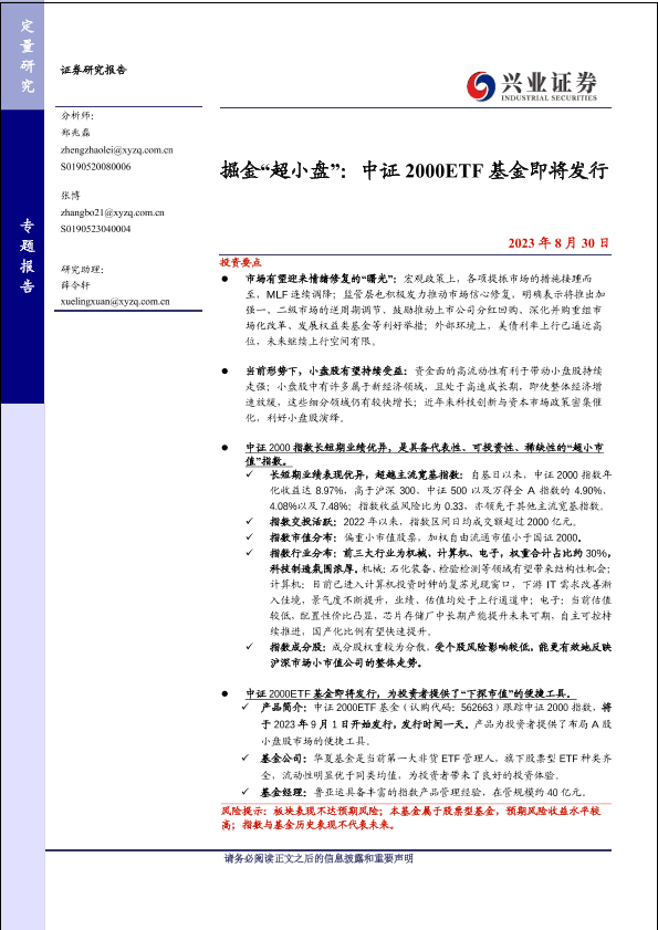 【兴业证券】【20230830】掘金“超小盘”:中证 2000ETF基金即将发行-25页