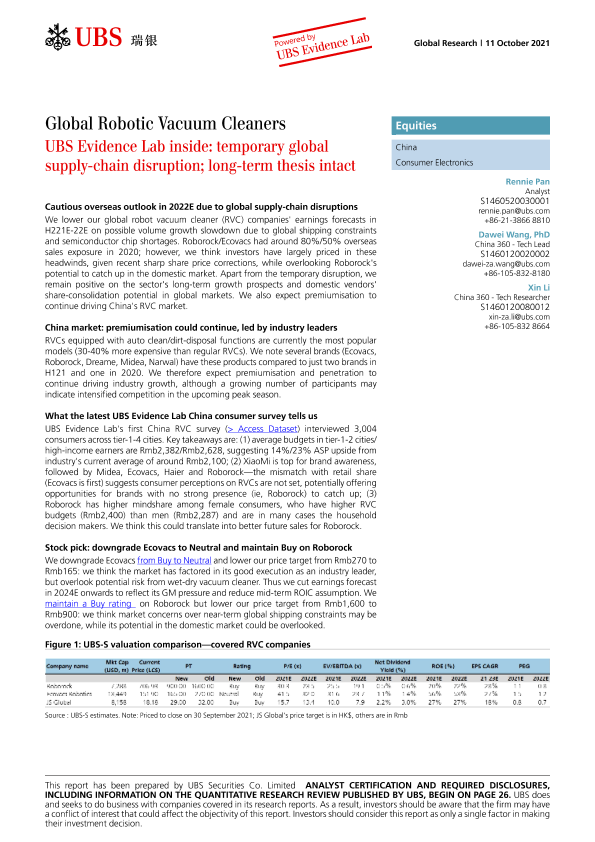 【瑞银】【20211011】瑞银-中国消费电子产品行业-全球机器人真空吸尘器:全球供应链暂时中断-35页