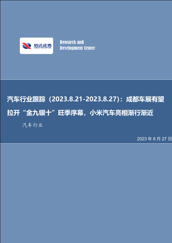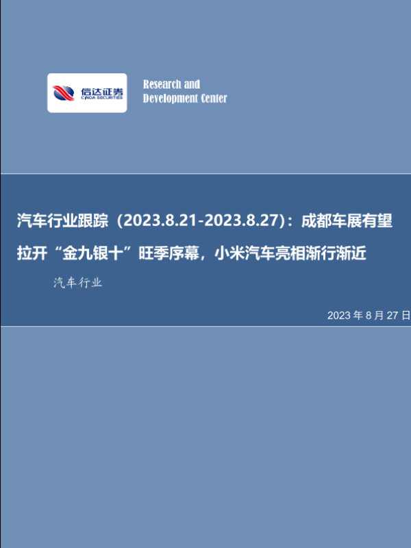 【信达证券】【20230827】汽车行业跟踪(2023.8.21-2023.8.27):成都车展有望拉开“金九银十”旺季序幕,小米汽车亮相渐行渐近-28页