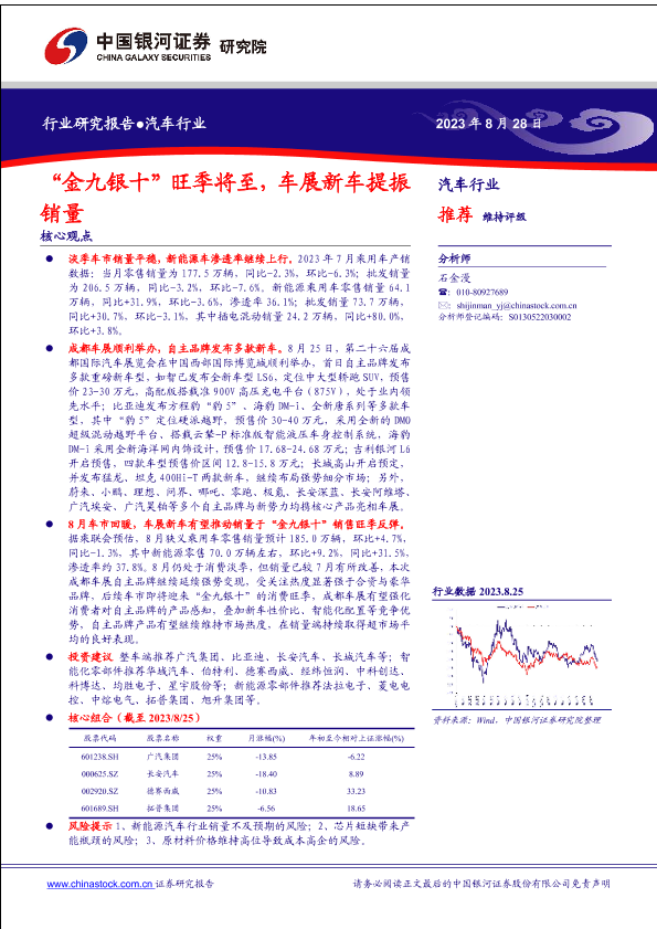 【银河证券】【20230828】汽车行业:“金九银十”旺季将至,车展新车提振销量-20页