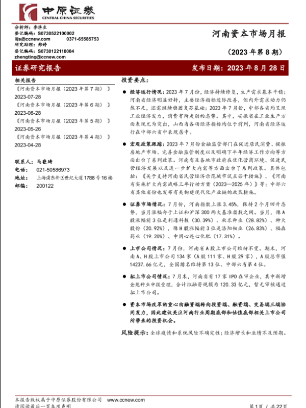 【中原证券】【20230828】河南资本市场月报(2023年第8期)-22页