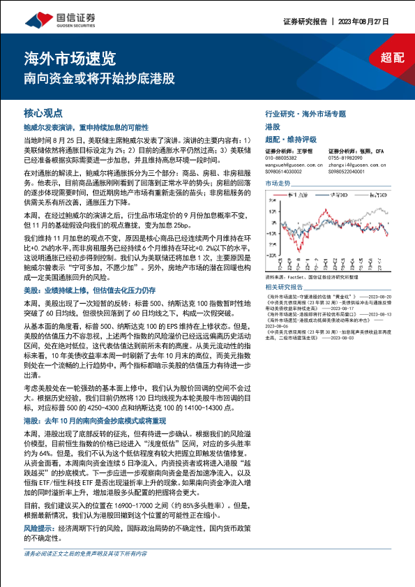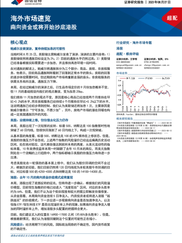 【国信证券】【20230827】海外市场速览:南向资金或将开始抄底港股-17页