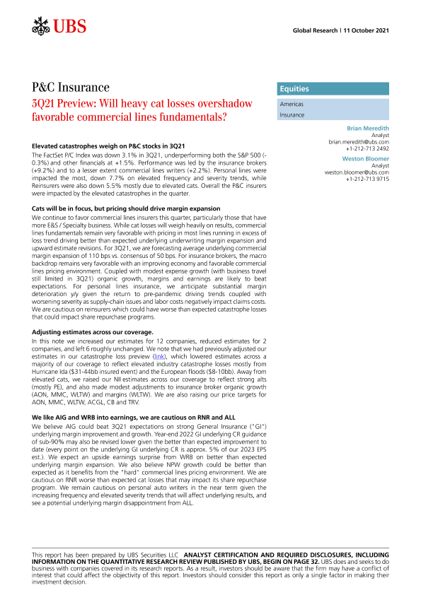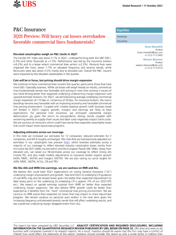 【瑞银】【20211011】瑞银-美股保险行业-巨额损失是否会掩盖有利的商业线路基本面?-40页