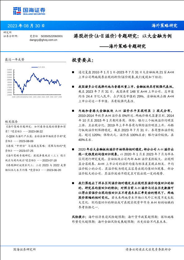 【国海证券】【20230830】海外策略专题研究:港股折价(A_H溢价)专题研究,以大金融为例-17页
