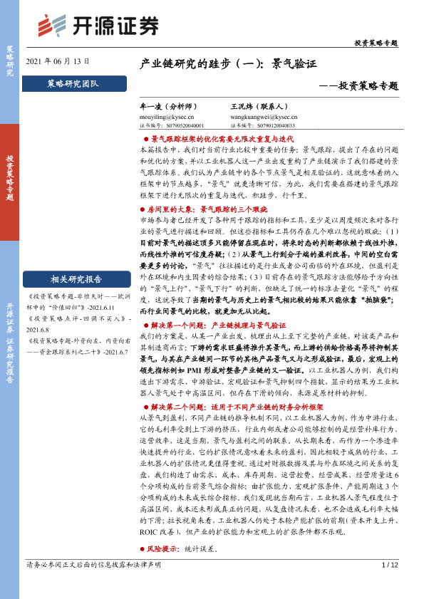 【开源证券】【20210613】投资策略专题:产业链研究的跬步(一),景气验证-12页