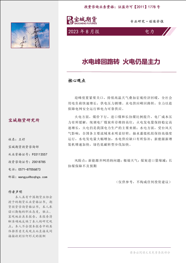 【宝城期货】【20230830】电力月报:水电峰回路转,火电仍是主力-19页