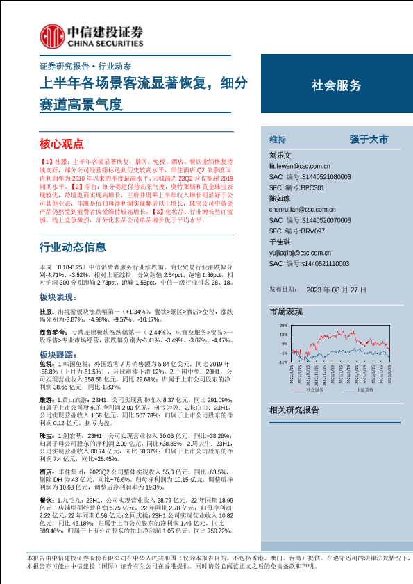 【中信建投证券】【20230827】社会服务行业:上半年各场景客流显著恢复,细分赛道高景气度-29页