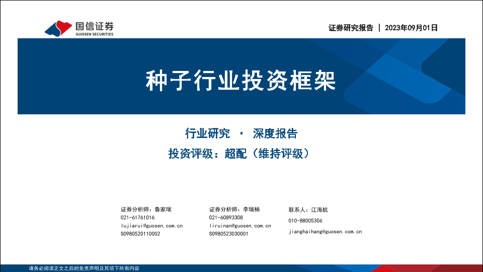 周期性行业 市场分析 投资框架 生物育种 种子行业
