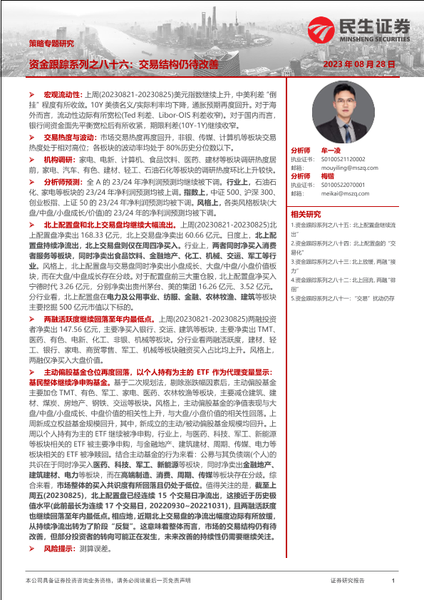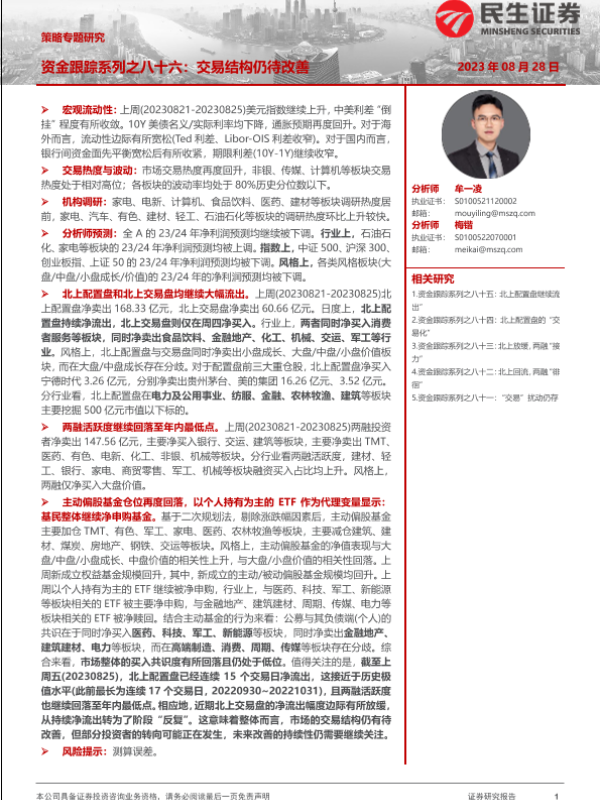 【民生证券】【20230828】策略专题研究:资金跟踪系列之八十六,交易结构仍待改善-35页