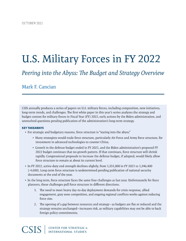 【国际战略研究中心】【202110】2022财年的美国军队:窥视预算和战略概述的深渊-14页