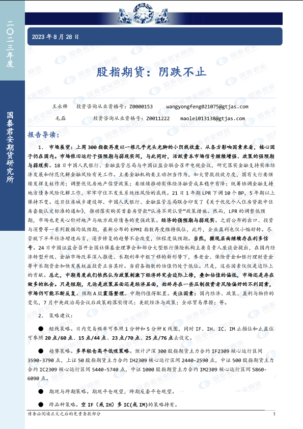 【国泰君安期货】【20230828】股指期货:阴跌不止-21页