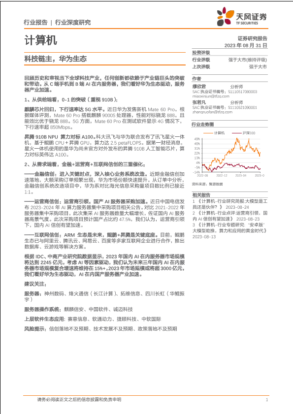 【天风证券】【20230831】计算机行业:科技链主,华为生态-22页