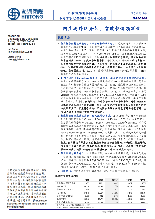 【海通国际】【20230831】赛意信息(300687)内生与外延并行,智能制造领军者-38页