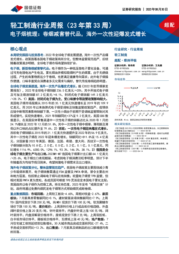 【国信证券】【20230830】轻工制造行业周报(23年第33周):电子烟梳理:卷烟减害替代品,海外一次性迎爆发式增长-22页