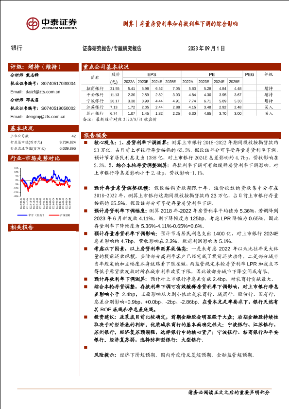 【中泰证券】【20230901】银行业:存量房贷利率和存款利率下调的综合影响-17页