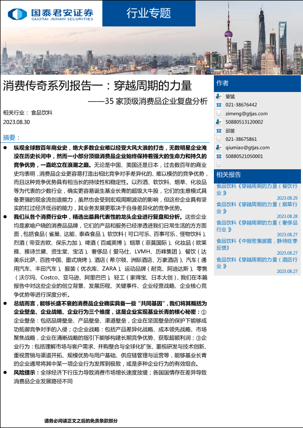 【国泰君安证券】【20230830】消费传奇系列报告一:穿越周期的力量——35家顶级消费品企业复盘分析-35页