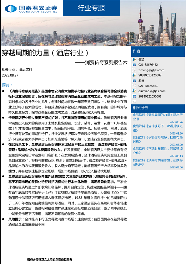 【国泰君安证券】【20230827】穿越周期的力量(酒店行业)——消费传奇系列报告六-30页